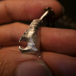 レジンプラスチックに置き換えた物にチェーン通し部分を造形して原型を製作。