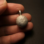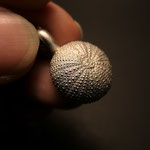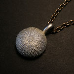 棘がすべて落ちたバフンウニの殻からシリコーンゴムで複製。