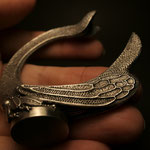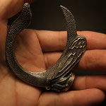 大きく反った角はインパクトがあります。